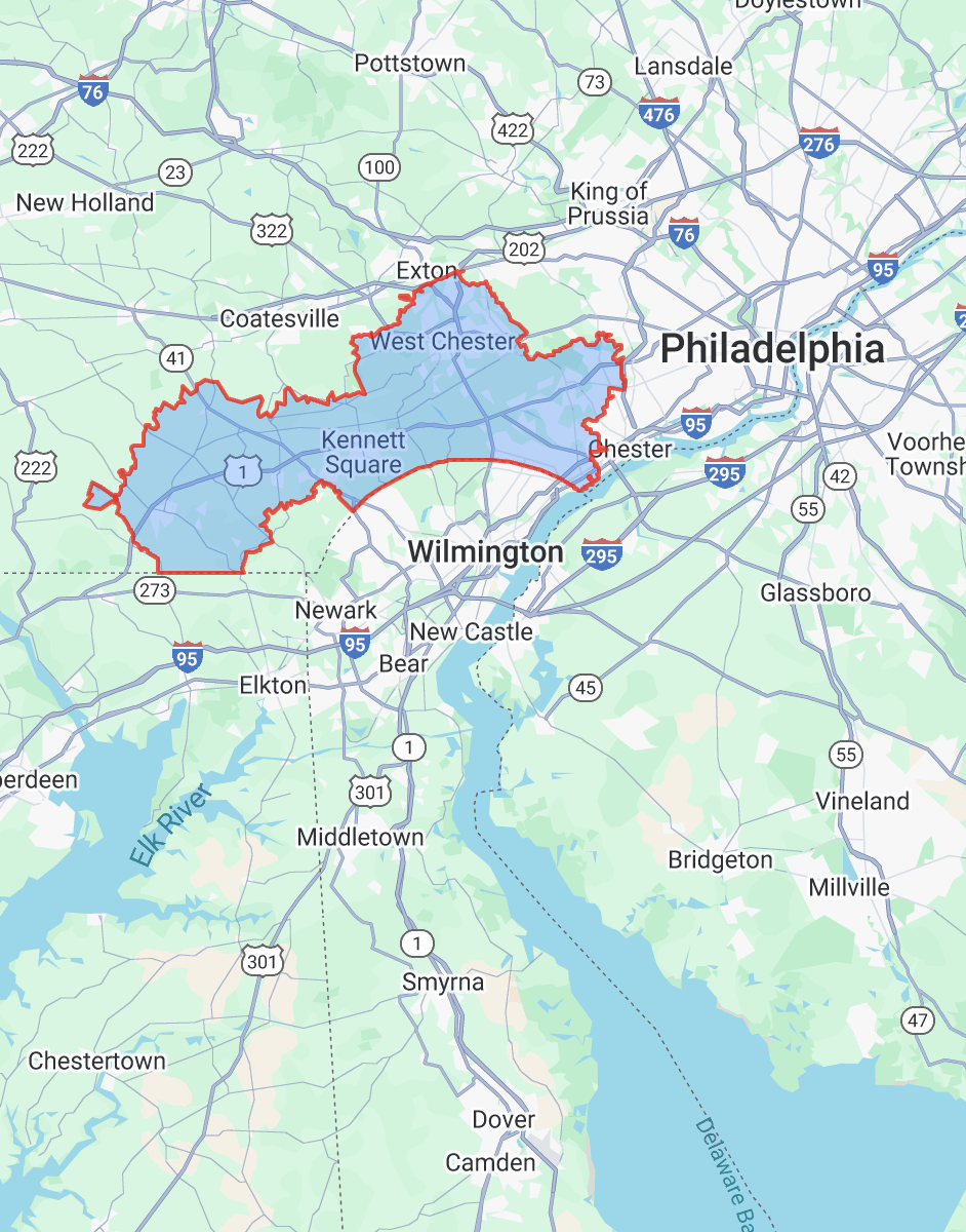 Aston, Chadds Ford, Cheyney, Garnet Valley, Glen Mills, Kennett Square, Landenberg, Lincoln University, Media, Oxford, Unionville, West Chester